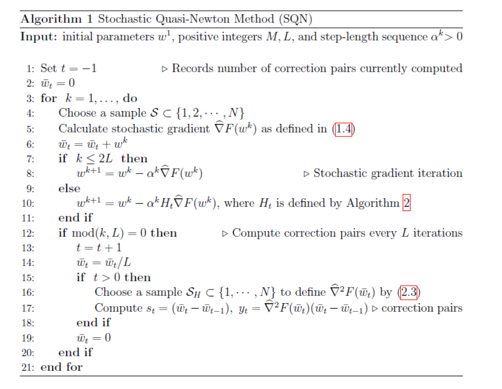 However, getting Hessian matrix is computational expensive. Thus, a more feasible solution is to use quansi-newton methods. We implement a stochastic quansi-newton method whose process can be shown as below.